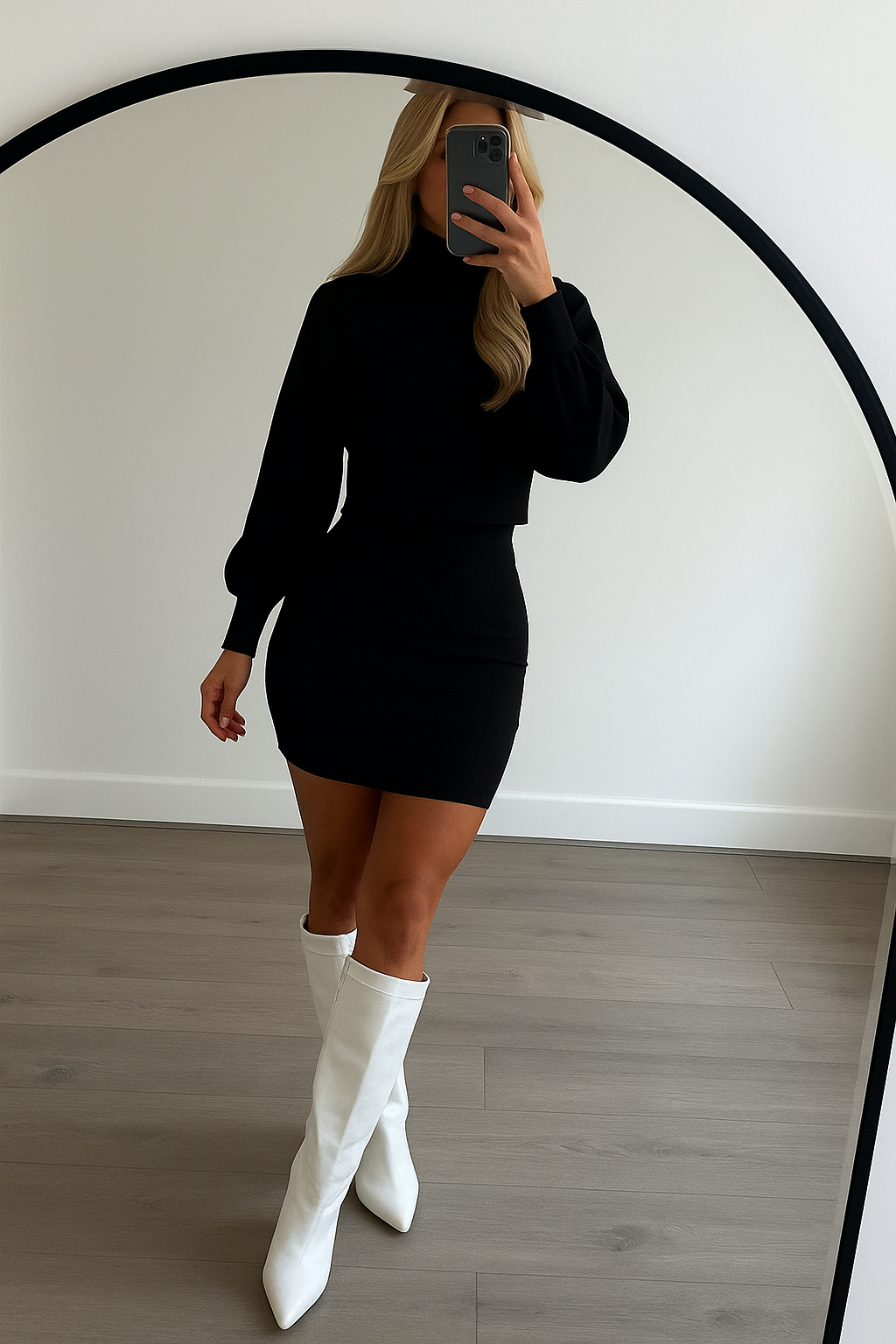 Onze Liv Set bestaat uit een elegante jurk met een los truitje eroverheen, ideaal voor het najaar. Dankzij de stretchy stof sluit de set mooi aan op het lichaam en is hij geschikt voor elke lengte. Draag 'm casual met sneakers of stijlvol met laarzen voor een complete herfstlook! 🍂